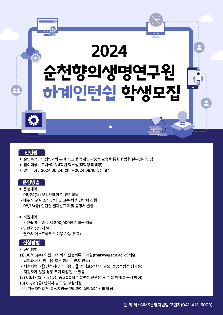 2024학년도 순천향의생명연구원 Summer Internship Program 개최 안내 및 모집